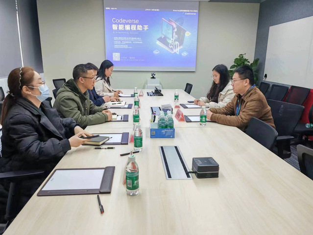 陈建华经理随后介绍了学院团队建设、人才培养、科学研究的基本情况,双方围绕财经智能传播人才培养、实践教学、产教融合等多方面进行了深入交流,达成初步合作意向。