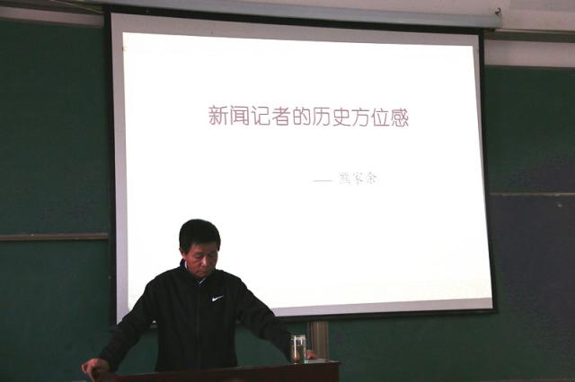 “相信每一个新闻工作者,都有自己的梦想,最大的梦想,莫过于我们手中的笔。”熊教授在讲座的开始这样说道。他首先提出“何谓新闻的历史方位”这个问题,讲述了范敬宜发表的《莫把开头当过头》和经济日报推出的《关广梅现象》这两篇改革开放初期报道,向我们说明,新闻作品对当时人们的思想解放和社会舆论都产生过很明显的催化作用。他向我们证明了新闻工作者应承担的责任,鼓励每个新闻人都要有一种坚守,有对历史责任的自觉担当,该出手时敢出手。