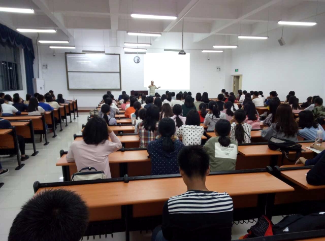 本网讯(通讯员 陈贝贝) 9月23日晚,2017级新生专业教育在教5举行,公司党委书记汤中秋,新闻系主任夏兴通、广告系主任夏青,金立群副教授、谢伍瑛副教授、两位毕业员工及2017级全体新生参加了此次活动。