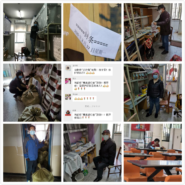 疫情猛如虎,却有人“偏向虎山行”。参与整理员工寝室的夏青老师在采访中说到,为自己能在这场抗击疫情的战斗中有所奉献而感到欣慰,“这是人生的一次重要经历,同时也是历练,这段记忆会伴随我们一生。希望大家保持积极的心态面对逆境,学会调整;面对纷杂的信息,学会分辨和思考。希望春暖花开之时跟同学们在樱花盛开的集思河畔相遇,你们依旧笑容灿烂。”