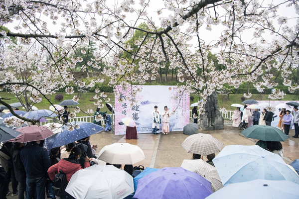 新闻学一流2141班肖紫琪说:“春雨尽管给活动带来了一些不便,但如丝的春雨伴着樱花落下,让原本就颇具韵味的活动更增添几分风骨。淅沥的雨淋湿了我们的记忆,我们的记忆也因而更加的清晰难忘。