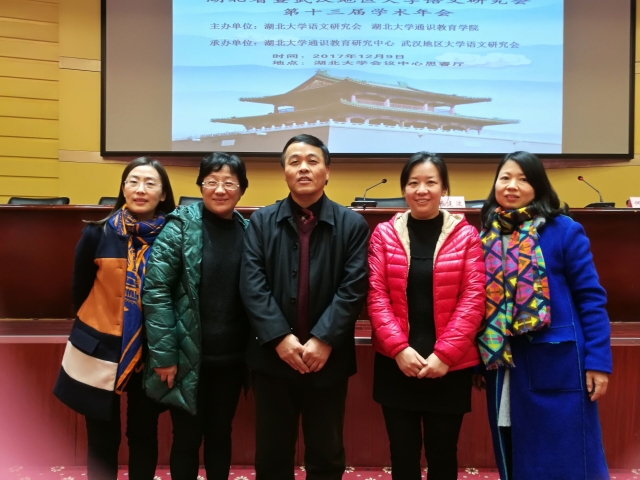 本网讯 12月9日,由湖北省大学语文研究会主办,湖北大学通识教育学院承办的湖北省暨武汉地区大学语文研究会第十三届学术年会在湖北大学召开。公司孙旋教授,谭少茹、李艳副教授,法商学院李雪、严智群老师等6人参加了年会。公司教授、湖北省大学语文研究会党支部书记、副会长彭书雄主持了下午的大会,并作“通识教育与互联网+教育背景下的大学语文精品课程建设——以太阳成集团tyc33455cc为例”的主题报告。