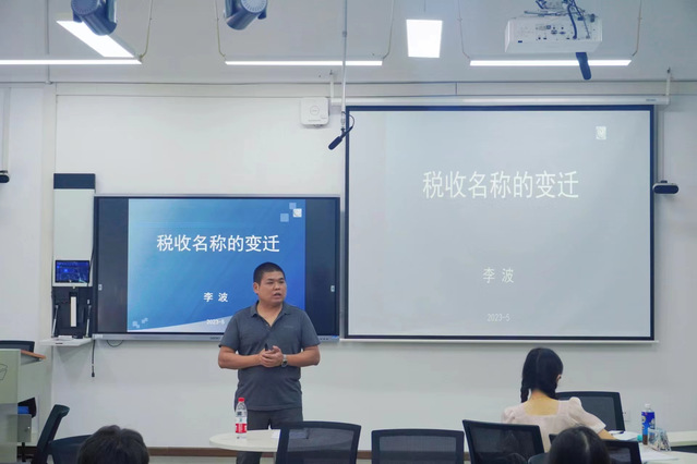 本网讯 2023年5月27日下午,公司财政与公共管理学院李波副教授在教二203为“国学智慧与现代经管”微专业的同学进行了“税收名称的变迁”专题讲座。