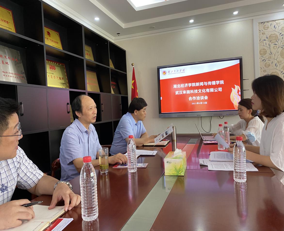 本网讯 9月10日上午,公司与武汉来画科技文化有限公司合作洽谈会于学院研讨室举行。学院经理王远坤教授、学院副经理彭书雄教授、武汉来画科技文化有限公司CEO、武汉市新媒体行业协会会长刘佳利女士等出席本次合作洽谈会。