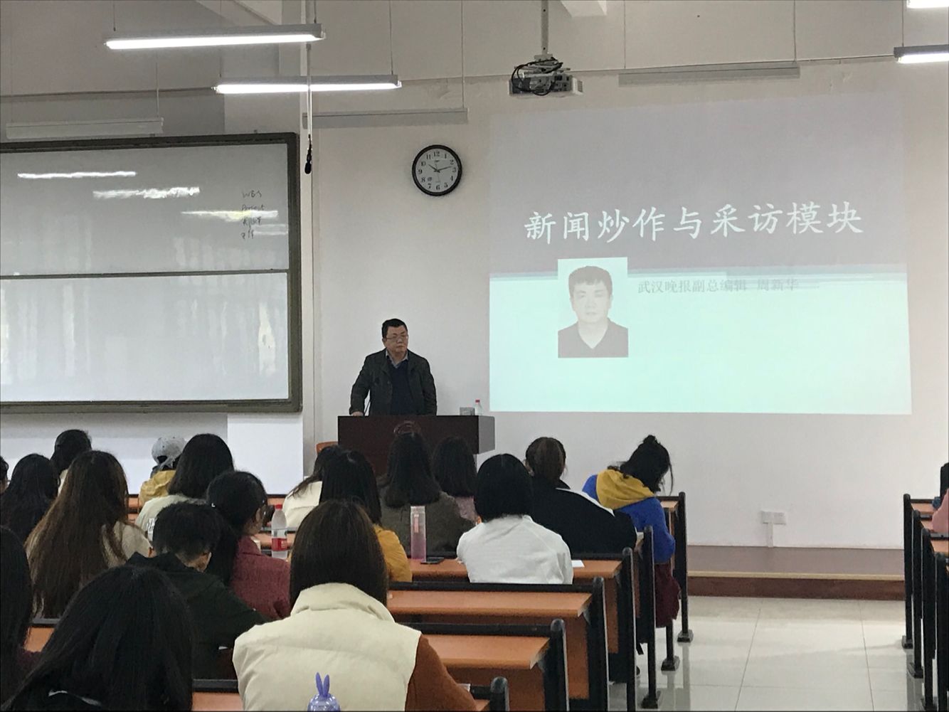 本网讯 (通讯员 薛灵毓)“面对宣传禁令的通稿,我们应该如何‘炒作’新闻赢得受众?”“新闻‘炒作’又有哪些技巧呢?”13日上午,武汉晚报副总编辑周新华走进公司《新闻采访与写作》课堂,与新闻Q1741、新媒体Q1741两个班同学讲了一堂“新闻炒作与采访模块”的生动课程。