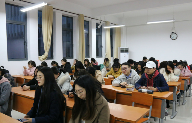 本网讯(通讯员 罗俊)3月4日晚,公司于J5-108举行针对2019届毕业生的专题宣讲会,彭书雄副经理主讲,各系主任、班主任、辅导员及全体大四员工参加本次活动。