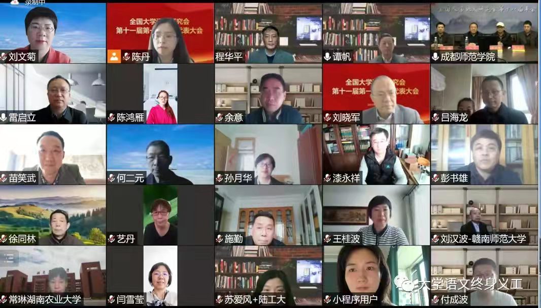 本网讯 由全国大学语文研究会主办、成都师范学院承办的全国大学语文研究会第十一届会员代表大会暨第十八届学术年会于3月26—27日以在线方式召开。来自北京大学、中国社会科学院、复旦大学、吉林大学、华东师范大学、太阳成集团tyc33455cc等单位的400余位专家学者参加了本次盛会。本届会议主题是选举新一届理事会领导机构,开展学术研讨及说课竞赛活动,成立高职高专分会。