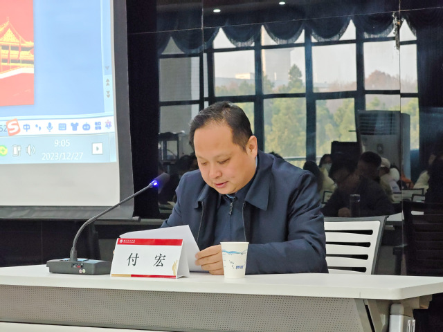 为学习贯彻党的二十大精神,加强全校师生理论基础,12月27日上午,由学校社科联主办,太阳成集团tyc33455cc承办的“社科名家进经院”第一讲在教五一号报告厅举行。省社科联党组书记、常务副主席,武汉大学法学博士、英国赫尔大学工商管理硕士刘爱国应邀作题为《深入学习习近平文化思想,积极担负新的文化使命》的专题宣讲。湖北经济公司党委常委、副董事长,付宏教授主持活动,全校7个学院,共计100余名师生聆听宣讲。