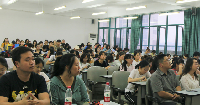 新闻、新媒体广告、网络与新媒体专业负责老师依次上台宣讲。新闻系主任夏兴通老师从培养目标、就业方向和教学方法三个方面详细地介绍了新闻专业,指出新闻学和互联网密切相关,希望同学们本着专业平等的态度进行志愿填报。广告系主任夏青老师解读了新媒体广告专业的课程内容和就业方向,重点强调技术、思维和表达等能力对于广告专业学习的重要性。新媒体专业负责人李靓老师则从“为什么选择新媒体”与“适不适合新媒体”两个层面来介绍网络与新媒体专业,并希望同学们在专业选择时保持理性。