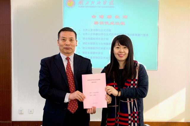 本网讯3月2日,学校举行2017年度第一批台湾籍教师聘任仪式。董事长漆腊应分别与包括公司谢雅卉、詹今慧在内的七位台湾籍教师签订聘任合同。