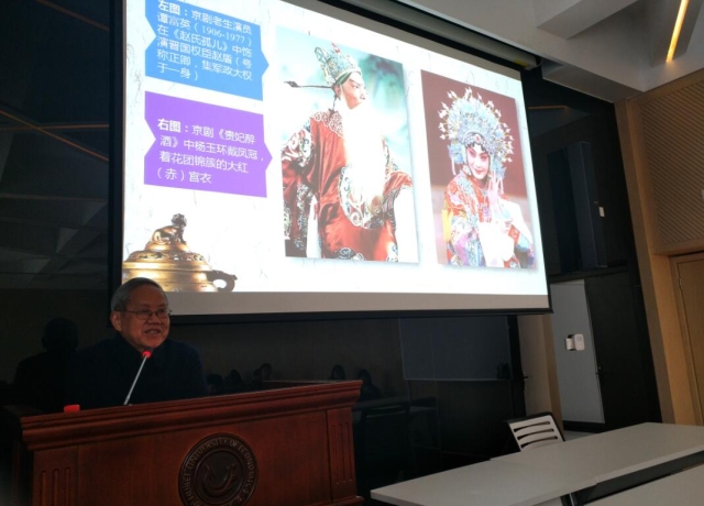 “大家都知道送葬穿白色衣服,结婚穿红色衣服,但这是为什么呢?许多学者都在研究色彩的问题,却很少有人思考日常生活中的这些情形。以此作为引子,郑教授开始向同学们讲解戏曲舞台色彩的相关知识。