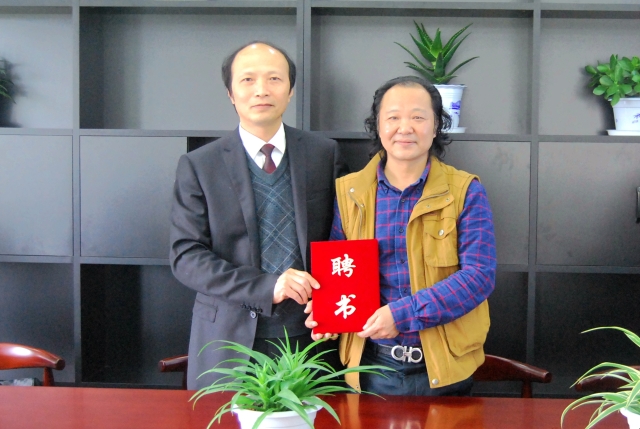 图为经理王远坤教授为魏开功先生(右)颁发客座教授聘书