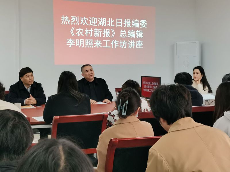 (本网讯)12月9日下午,应公司邀请,湖北日报编委、《农村新报》总编辑李明照为公司工作坊做媒体人经验交流讲座,与同学们分享最前沿的业界资讯,帮助大家更好地将理论与实践结合。